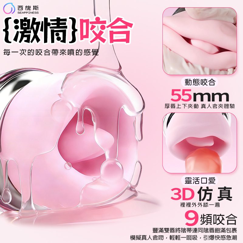 激情齒感咬合: 55mm 超大範圍的動態上下夾擊,模擬真人含吮的包裹感,讓快感不只是點狀,而是面面俱到的全面包圍。