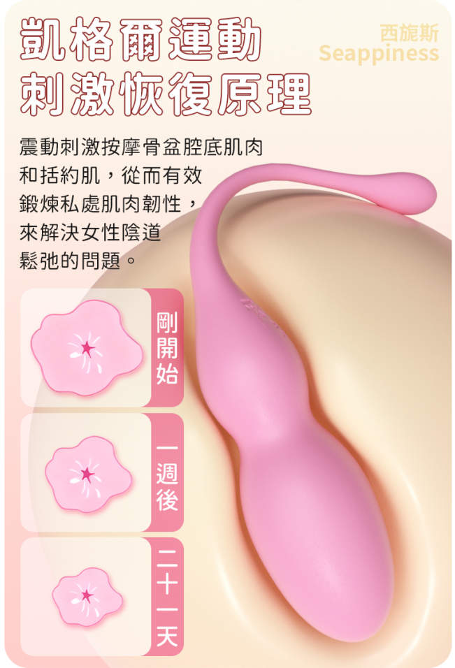 那這款雙韻緊致鍛煉球是Seappiness西旎斯為經驗較少、對親密接觸感到緊張或擔心不適的女性量身設計,以「零負擔體驗」為出發點,重新定義溫柔探索的可能。