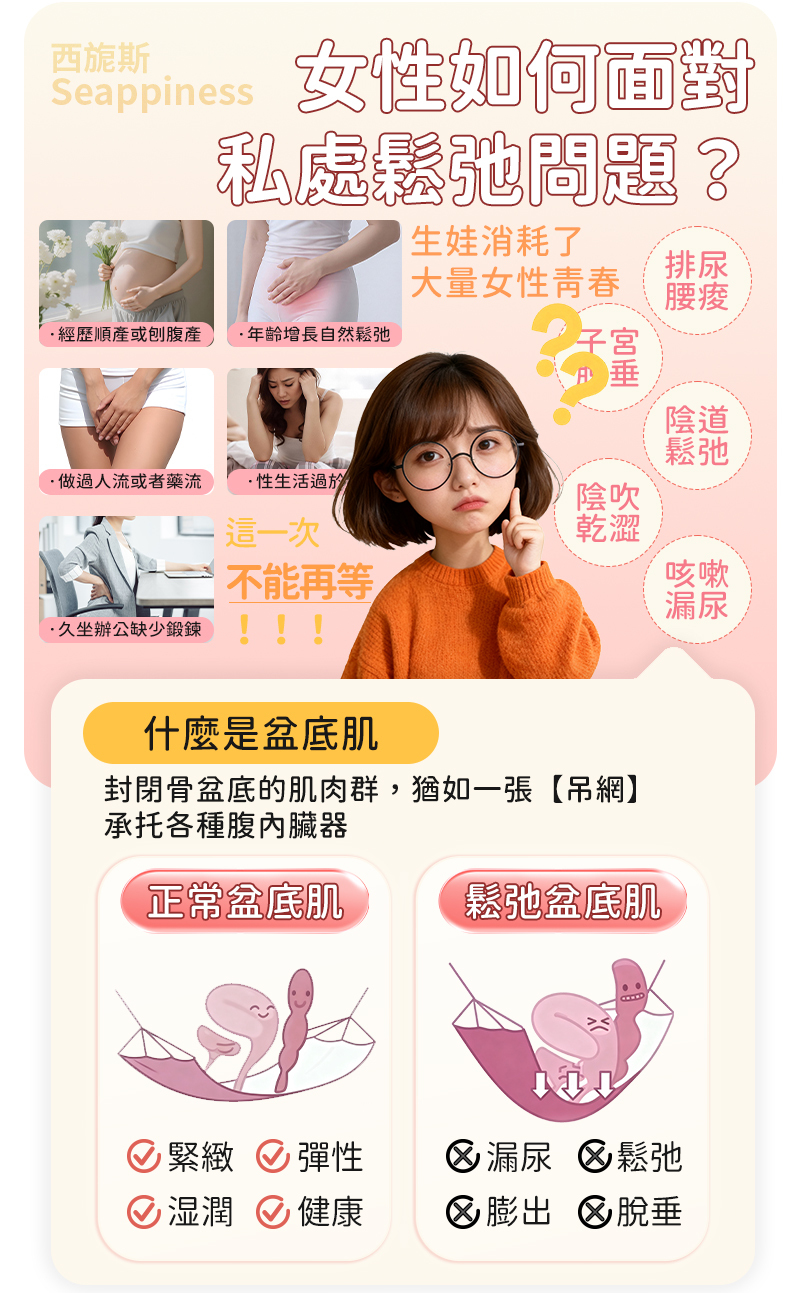 我們專為關注自身健康與生活品質的台灣女性設計,將專業的盆底肌鍛煉,融入輕松、隱私的每日方式。
