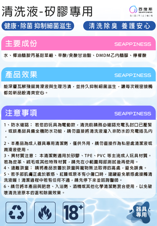 這罐是針對矽膠、TPE等主流材質開發的。不建議用於其他材質的玩具,如果一定要用,也請先在小範圍局部測試,沒問題再大面積清洗,守護你的稀有收藏。